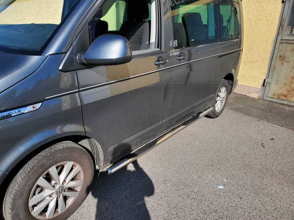 TA Boční ochranné nerezové nášlapy trubky s prolisy pro Volkswagen T5 Facelift/T6