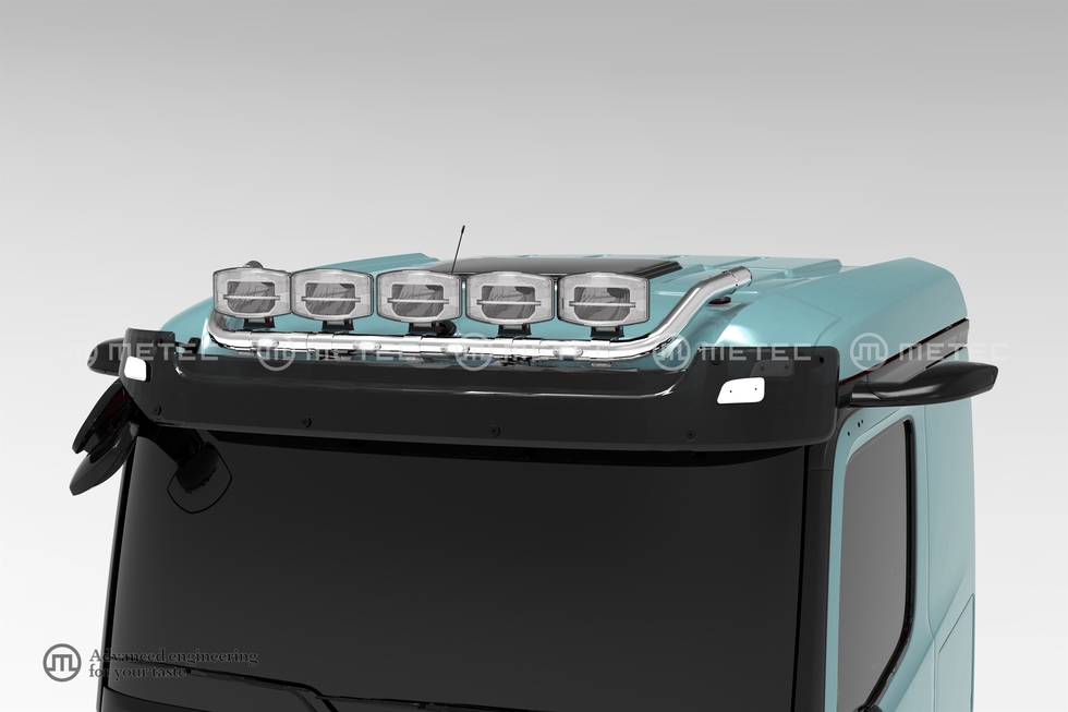ME Horní ochranný nerezový rám na střechu kabiny CLASSIC pro 5 přídavných světel s led 4 pozičkami pro MB Actros 2025-