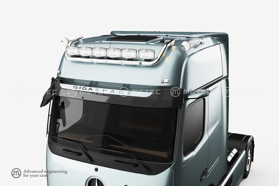 ME Horní ochranný nerezový rám na střechu kabiny GIGA pro 6 přídavných světel s led pozičkami pro MB Actros 2025-