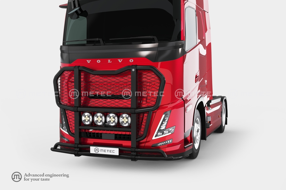 ME Přední velký ochranný nerezový rám černý s mříží a spodním rámem do boků pro Volvo FH AERO 2024-