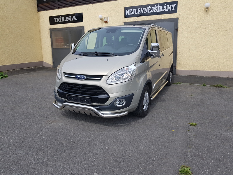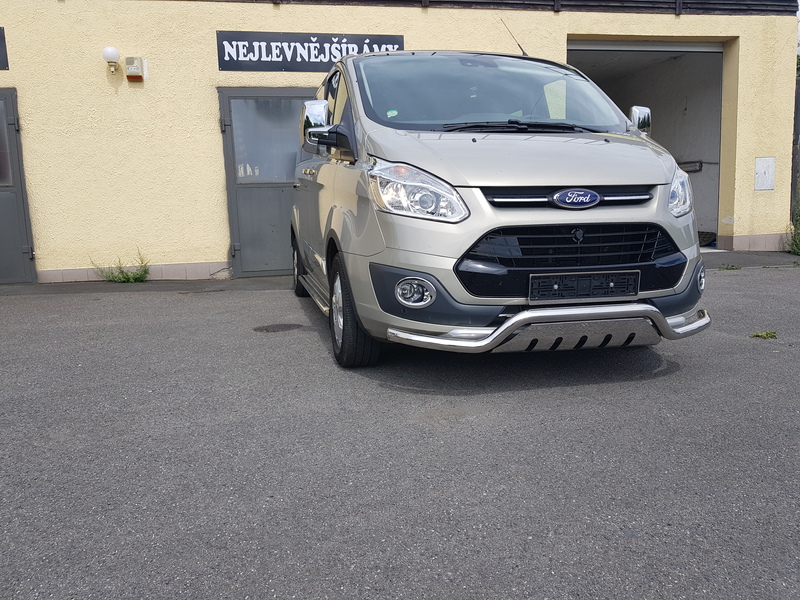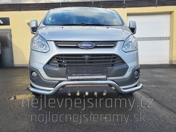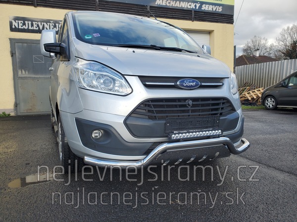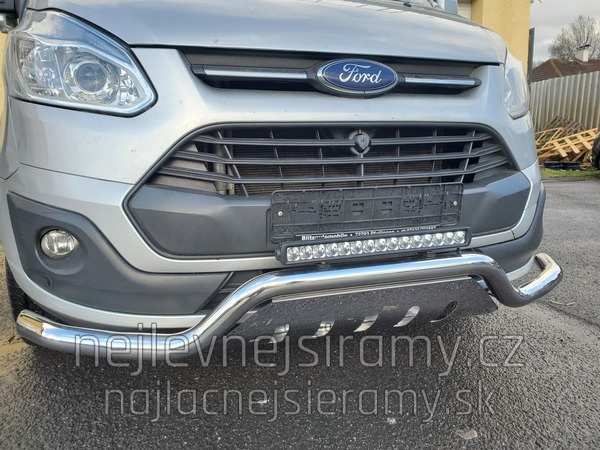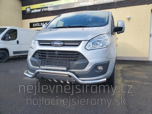 TA Přední ochranný nerezový rám – tyč se spodním plechem a s led přídavným světlem pro Ford Transit Custom 2013