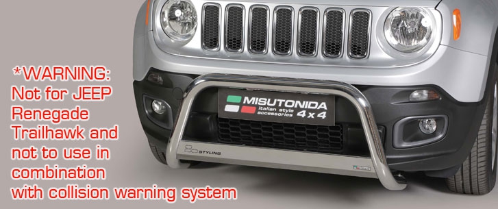 Jeep Renegate přední ochranný nerezový rám s plechem a varianta s přídavnými světly